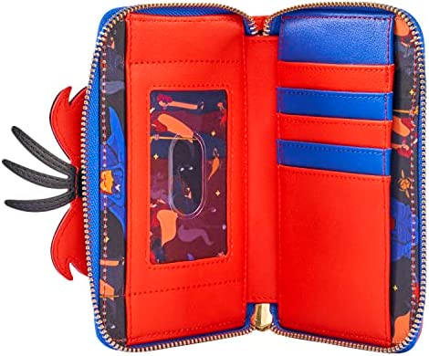 Featuring incredible detail to bring Iago to life, this Loungefly wallet is made of vegan leather (polyurethane), zips closed with sturdy metal hardware, and has credit card slots as well as a clear slot for holding your ID.