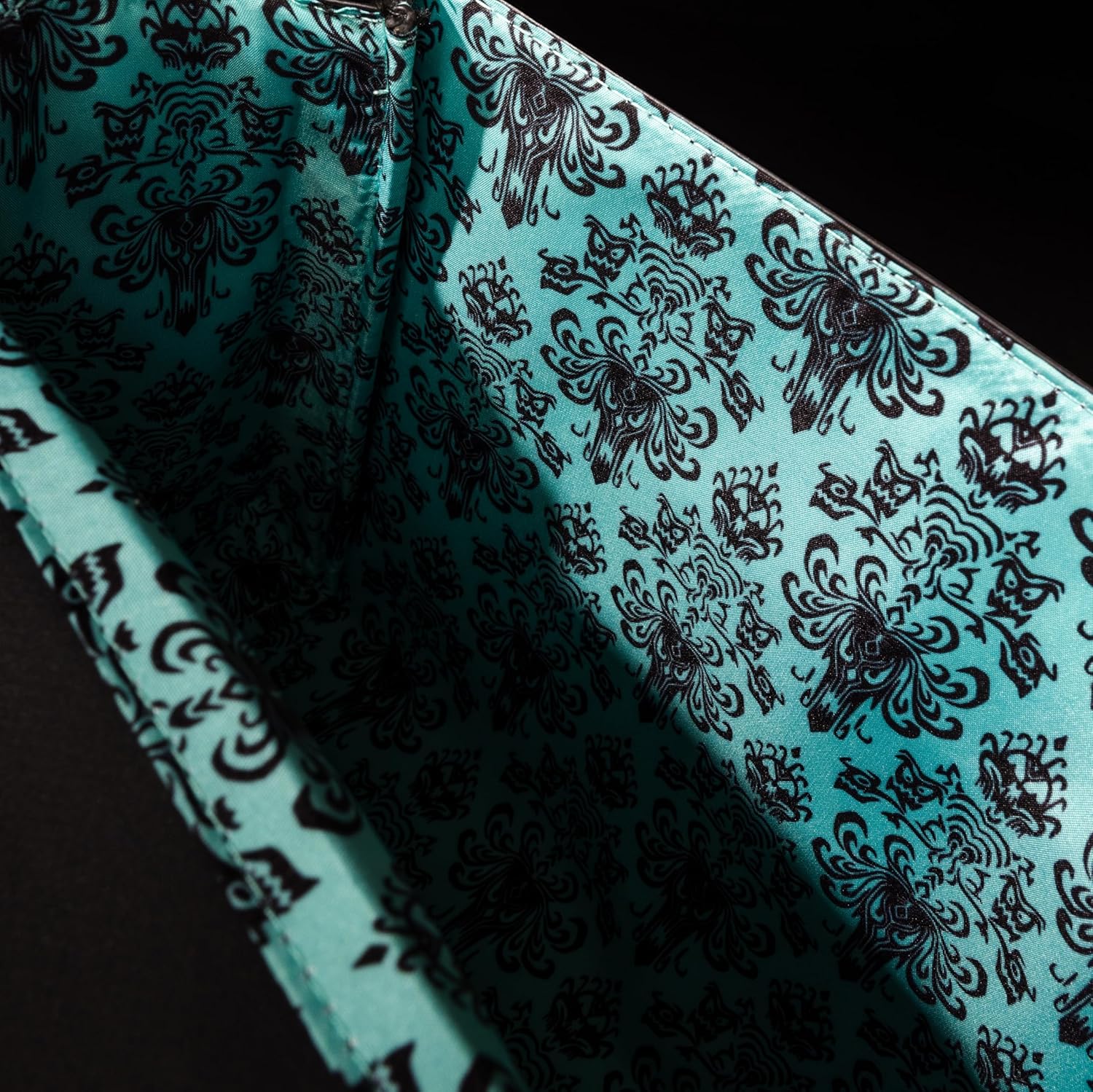 Featuring incredible detail to bring Haunted Mansion to life, this Loungefly crossbody bag is made of vegan leather (polyurethane), long crossbody strap, and metal zipper enclosure. Inside, the bag continues the theme with unique, coordinating lining.